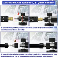🔗 Dual-Connector System – Comes with detachable M22 and 1/4" quick-connect fittings, making it compatible with most pressure washers for hassle-free attachment. (Not for direct use with garden hoses!)