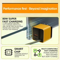⚡ 80W Max Fast Charging – Speed Meets Efficiency: Equipped with advanced GaN technology, this charger delivers high-speed, stable power for smartphones, tablets, laptops, and more – all while staying cool and compact.