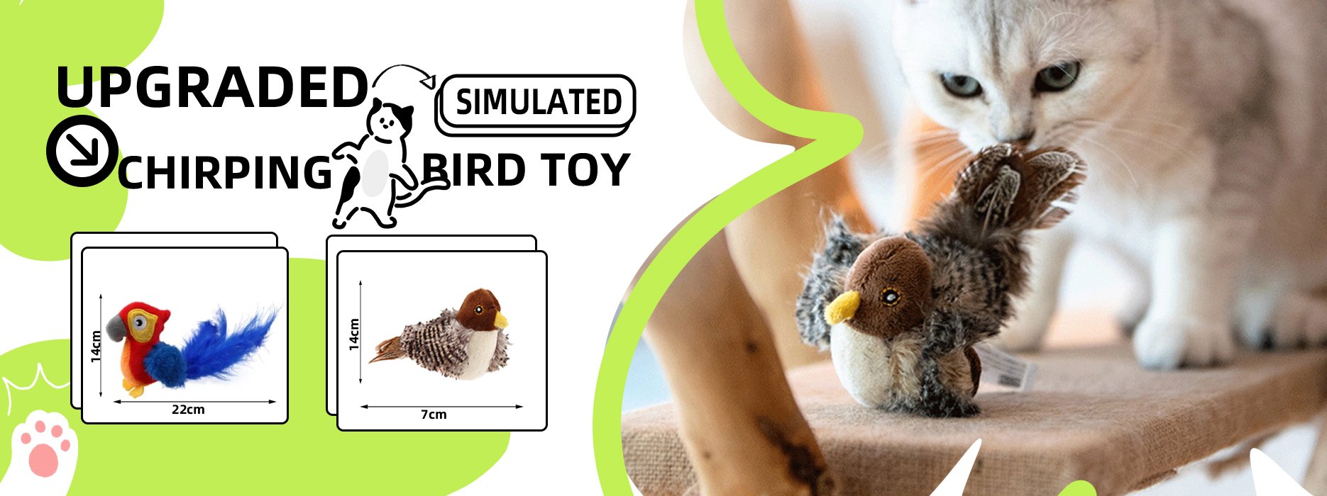 "My cat absolutely loves this chirping bird! The flapping wings and realistic sounds keep her entertained for hours."